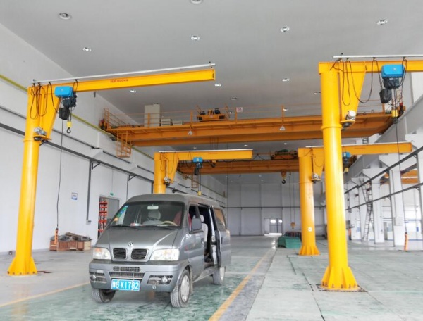 定柱式旋臂起重机配合了性高的JPKK型环链电动葫芦尤其适用于短距离,使用频繁,密集性吊运作业,具有*效、节能、省事、占地面积小,易于操作与维修等特点。环链电动葫芦有起升和在横梁上往返运行的功能,旋臂梁可由回转装置上的的减速机带动滚轮进行回转运动,电器控制箱安装在环链葫芦上。